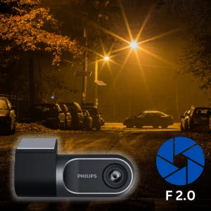 The Philips GoSure 3001 car dash camera is equipped with a highly sensitive image sensor and bright F/2.0 lens.