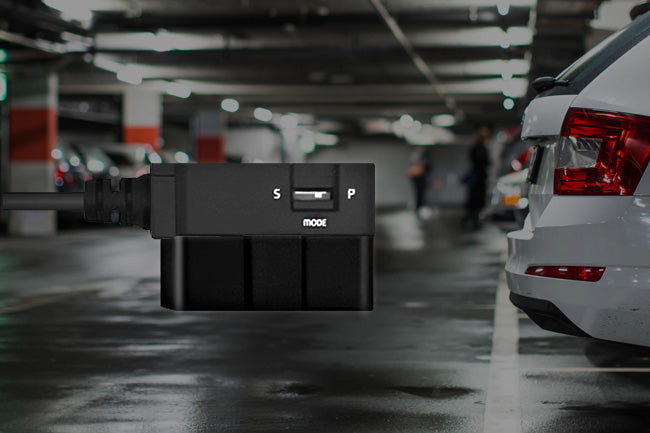 IOPC(IROAD OBDII Power Cable) built-in switch allows setting the recording mode at all times. – S:Driving mode only / P:Driving & Parking mode