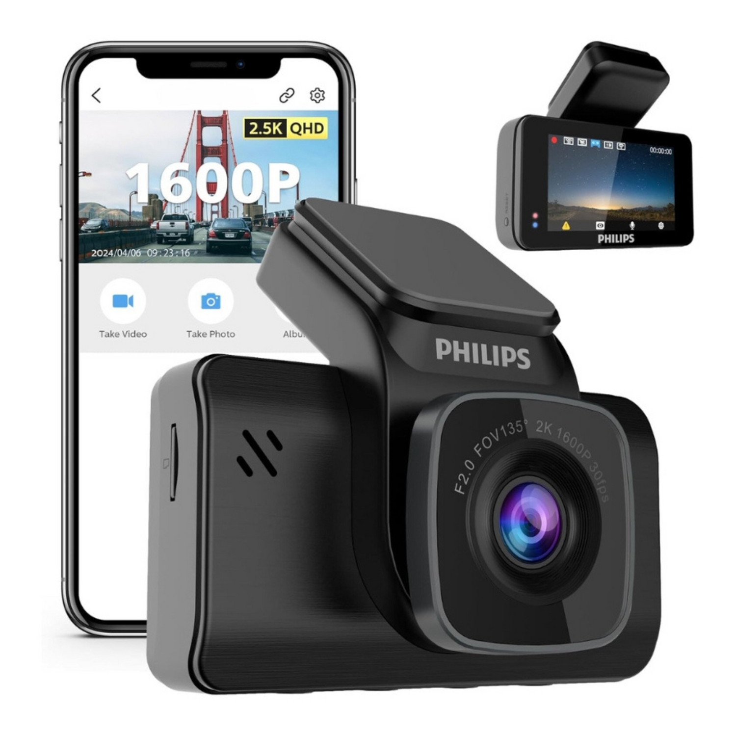 PHILIPS GoSure 5101 Dash Camera for Car, 2K QHD 1600p, G-Sensor