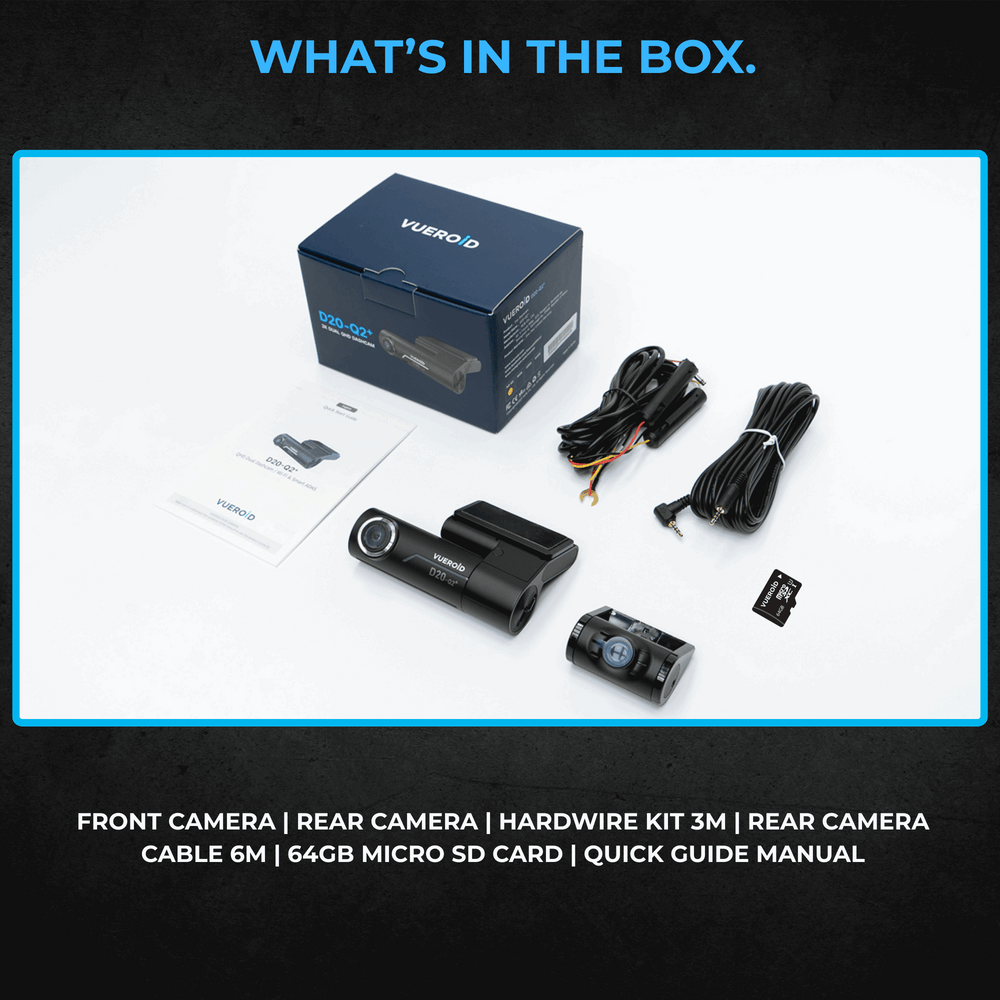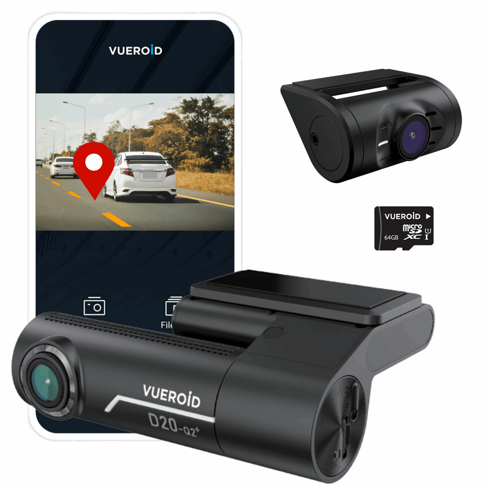 VUEROID D20-Q2 Plus 2CH Dash Cam for Car - Dual 2K QHD 1440p Front & Rear