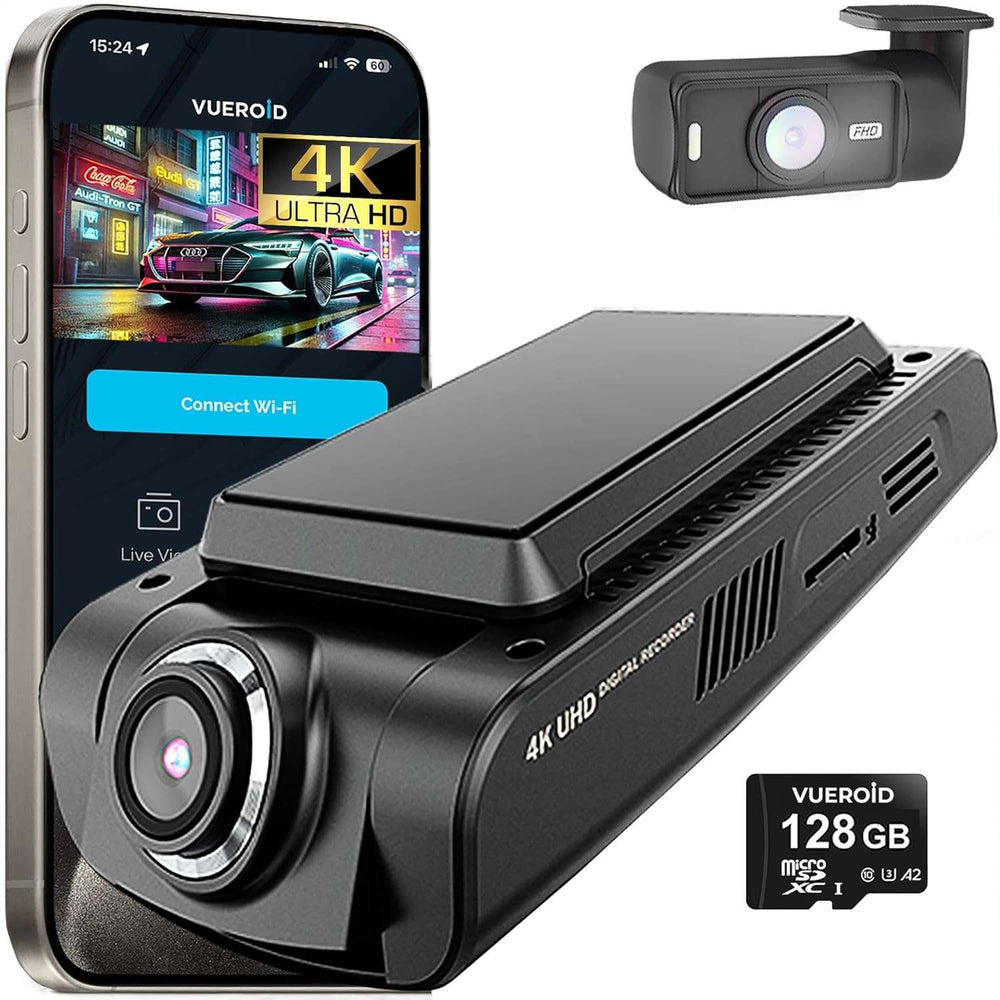 VUEROID D21 4K 2CH Dash Cam, Dual Channel Surveillance, Ultra HD Front Camera
