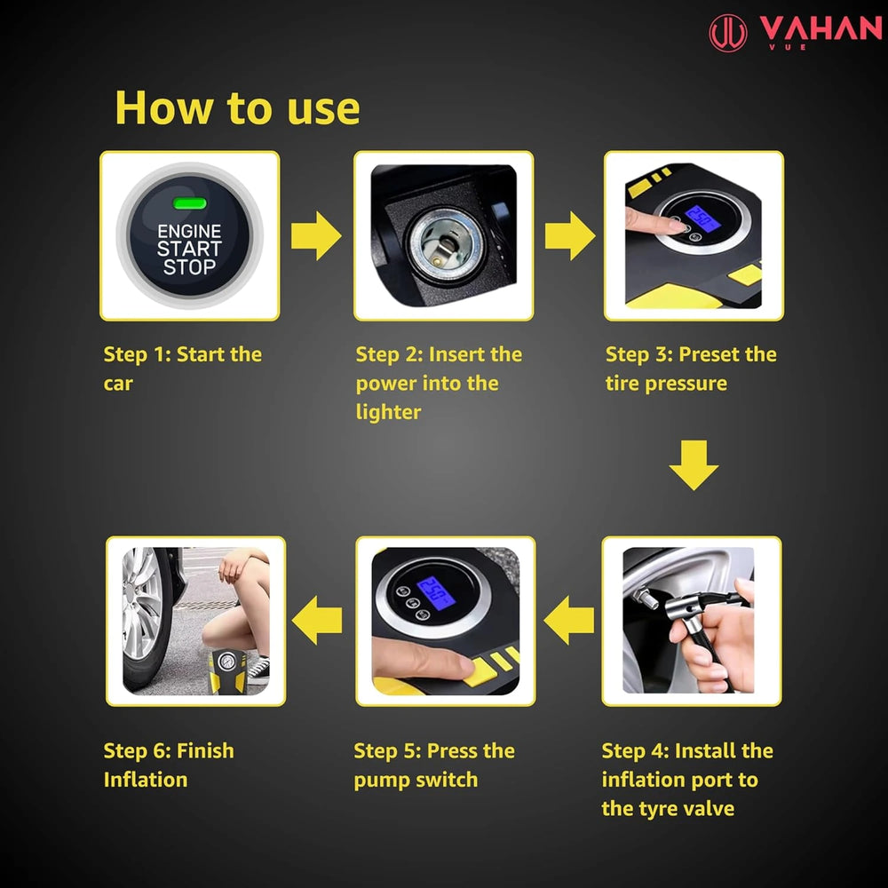 VAHAN VUE Car Tyre Inflator Air Compressor with Auto Stop and LED Light 12V